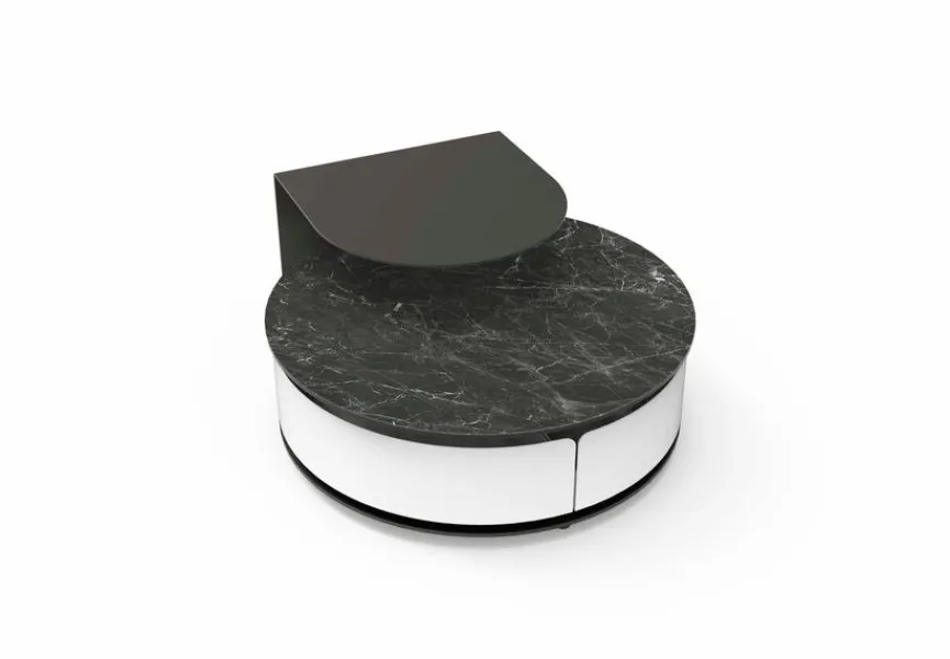 Mit seinem skulpturalem Touch ist der Couchtisch Theta shelf aus dem Hause Naos ein Blickfang der Extraklasse, der gut zu puristischen Einrichtungsstilen passt. Außerdem begeistert dieser Wohnzimmertisch mit einem durchdachten Mechanismus. Die beiden Schubladen, mit denen der Couchtisch Theta shelf ausgestattet ist, lassen sich synchron öffnen.