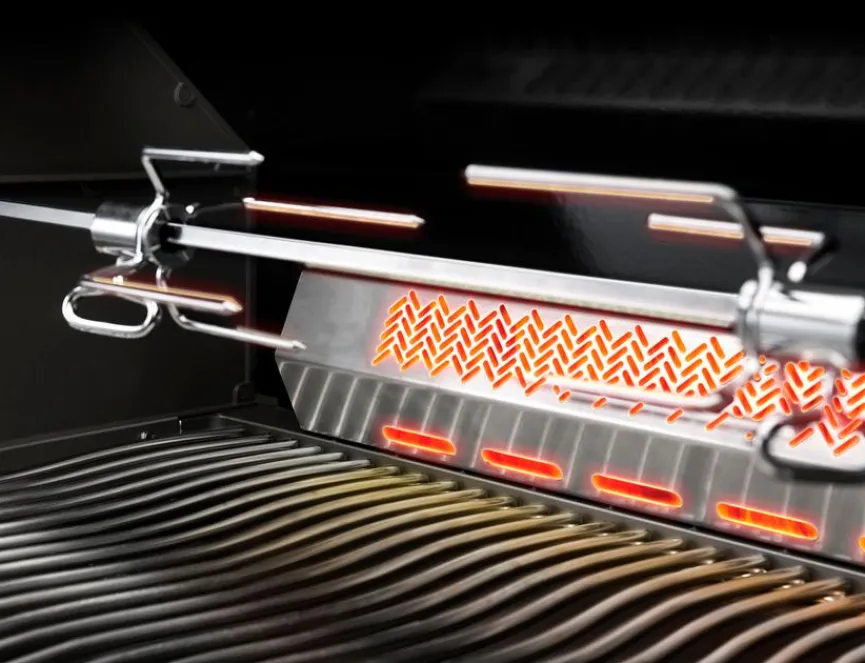 - Mit 5 Hauptbrenner aus Edelstahl und Edelstahl-Infrarot-Heckbrenner, mit JETFIRE™ Zündsystem und Elektronisches Zündsystem,