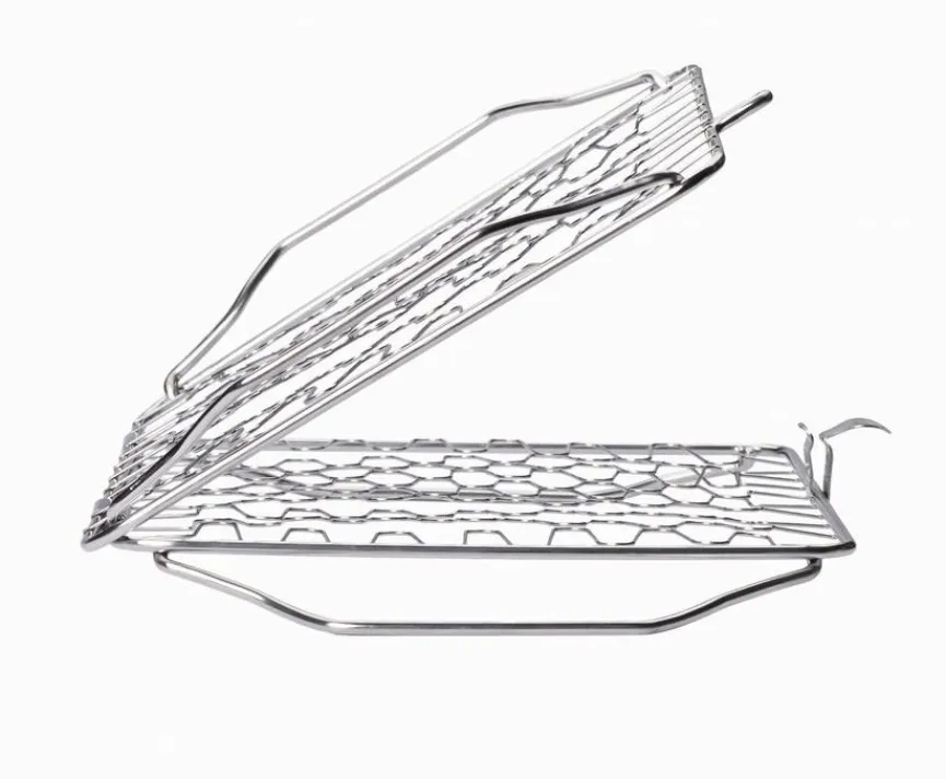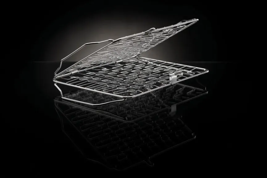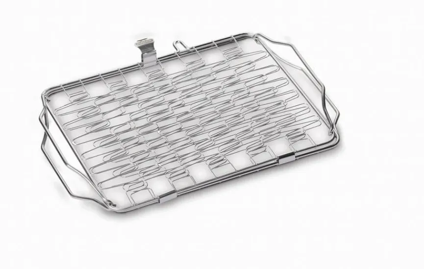 - Hält Speisen zwischen den zwei Seiten fest und ist exzellent für die Zubereitung von Lachs, Gemüse etc. geeignet