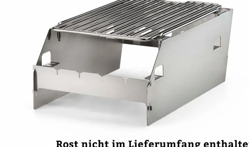 - Der Grillrost kann in drei weitere Positionen verstellt werden, Grillrost nicht im Lieferumfang enthalten