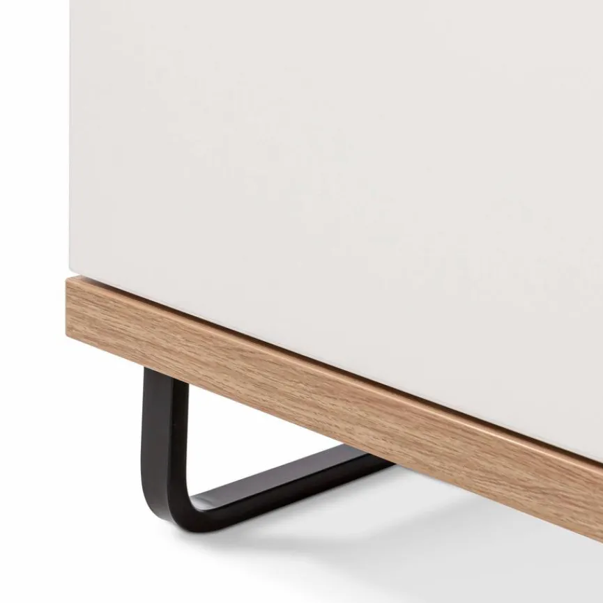 - Korpus und Front aus Holzwerkstoff (Spanplatte) mit kratzfester Melaminharzfolie in Polarweiß, Absetzung aus Holzwerkstoff (Spanplatte) mit kratzfester Melaminharzfolie in Artisan Eiche