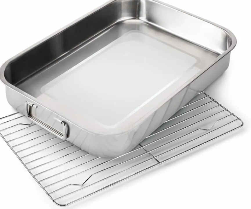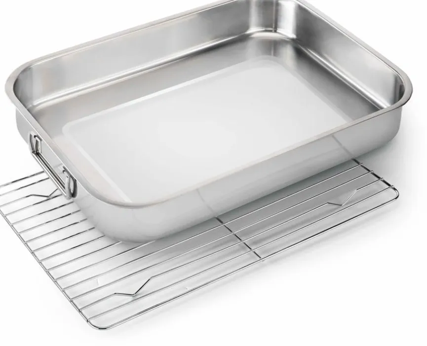 Die Bratpfanne aus Edelstahl eignet sich hervorragend für die Zubereitung von Familienmahlzeiten, unabhängig davon, ob Sie Ihren Napoleon-Grill oder den Backofen nutzen. Der mitgelieferte Wenderost aus Edelstahl kann umgedreht werden und bietet eine erhöhte Plattform für Ihren Braten zum Auffangen von Bratenfett, mit denen Sie köstliche Saucen zubereiten können. Die Edelstahl-Bratpfanne ist groß und tief und eignet sich daher zum Auffangen von Bratenfett, zum Rösten von Gemüse und natürlich auch zum Zubereiten großer Braten. Dank der stabilen, einklappbaren Griffe lassen sich große Mahlzeiten einfach zwischen Grill, Herd und Spülmaschine bewegen. Unser praktisches, multifunktionales und pflegeleichtes Zubehör bietet Ihnen alles Wesentliche für die Zubereitung köstlicher Grillgerichte und darüber hinaus eine Vielzahl kreativer Ergänzungen, um Ihren kulinarischen Horizont zu erweitern.