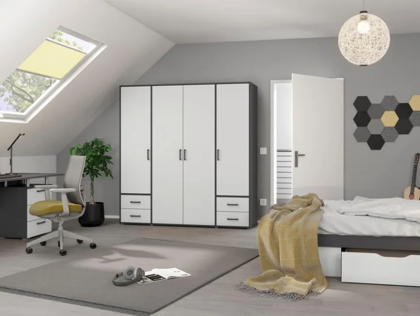 Mit dem Drehtürenschrank 4-trg. Voyager 187×194 cm präsentiert rauch BLUE ein wahres Stauraumwunder. Schubladen sowie eine clevere Aufteilung bieten ausreichend Platz, damit Ihre Kleidung das ganze Jahr über stets griffbereit ist. Freuen Sie sich bei jedem Öffnen über die Ordnung und Übersicht im Drehtürenschrank 4-trg. Voyager 187×194 cm.