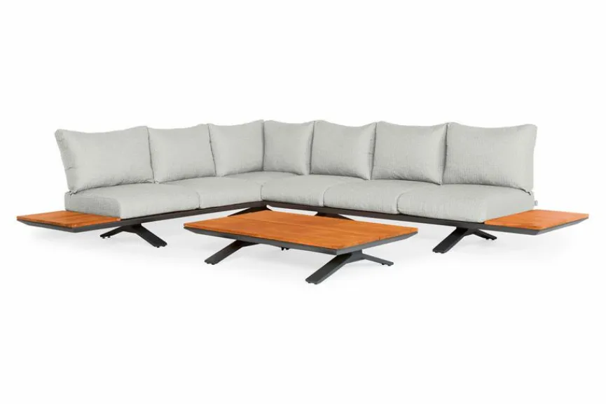 - Set besteht aus 1x 3-Sitzer mit Ecke und Seitentisch, 1x 3-Sitzer mit Seitentisch und 1x Loungetisch