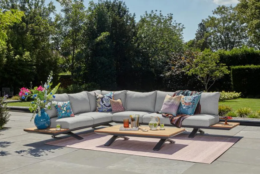 - Inkl. Kissen und Bezüge aus Sunproof Fontelina Stoff in soft grau