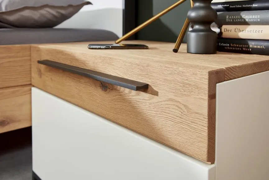 Die Nachtkonsole Joline aus dem Hause Musterring punktet mit ihrem modernen Design, das optische Akzente setzt. Zudem bietet dieser Nachttisch mit zwei Schubkästen praktischen Stauraum. So haben Sie dank der Nachtkonsole Joline der Marke Musterring stets alle notwendigen Gegenstände schnell zur Hand.