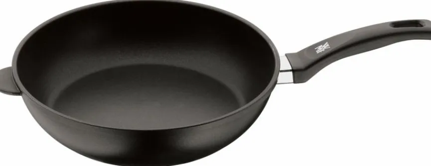 Die Schmorpfanne 28 cm von WMF eignet sich sehr gut, um mit wenig Fett zu braten. Denn dieser formschön designte Schmortopf ist mit einer speziellen Antihaftbeschichtung versehen. Zudem ist die Schmorpfanne 28 cm aus dem Hause WMF in der Lage, die Wärme gleichmäßig zu verteilen.