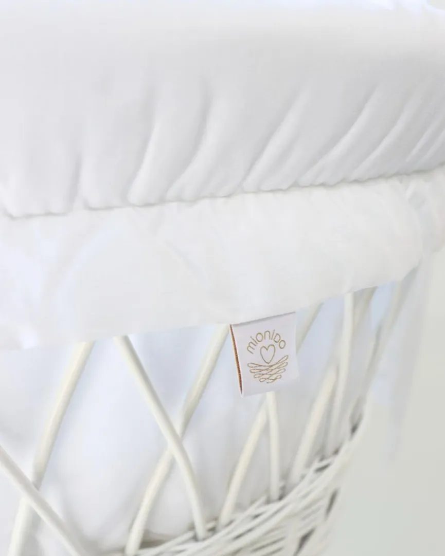 - Matratzenbezug, Spannbettlaken, Stubenwagenpolsterung und Himmel abnehmbar und waschbar bei 30° C, Matratzenbezug waschbar bei 60° C; Bezüge nicht trocknergeeignet
