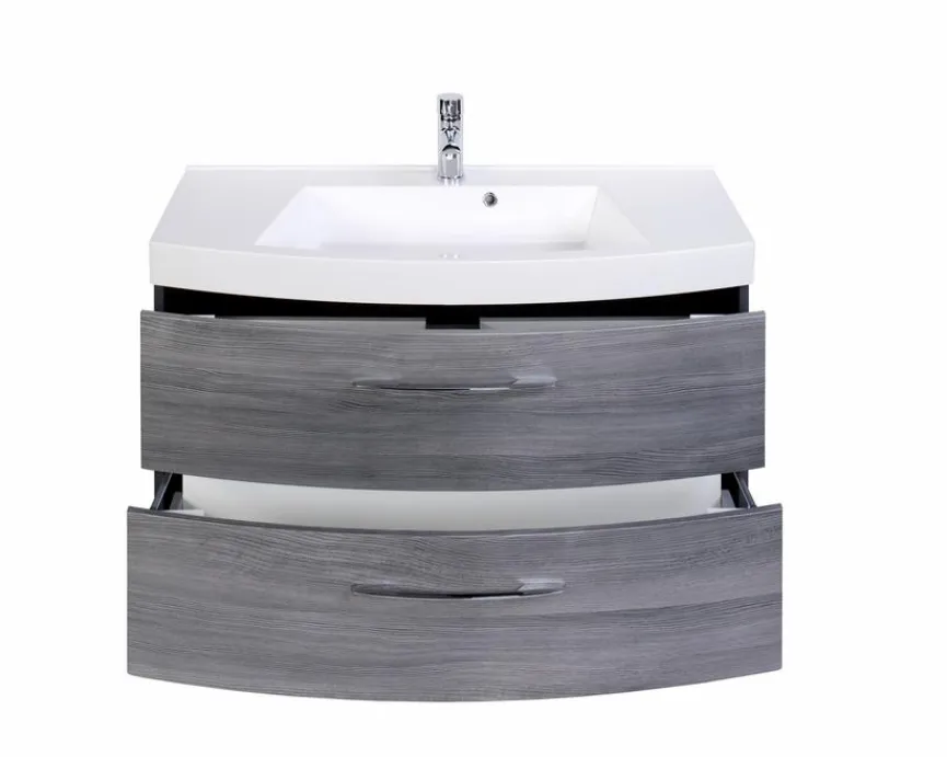 Stilvoll in der Optik, hochwertig in den Materialien – das zeichnet den Waschbeckenunterschrank Florida aus. Zwei Metall-Vollauszüge mit Softclose-Funktion bieten Platz, um diverse Hygienartikel und Accessoires zu verstauen. Das inkludierte Mineralgussbecken hebt sich farblich vom Waschbeckenunterschrank Florida ab und bildet einen schönen Kontrast.
