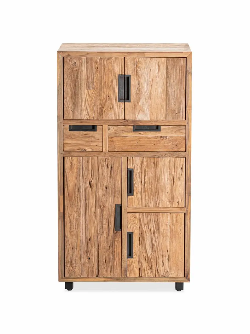 Die Kommode Verdin des Herstellers Niehoff Garden fasziniert durch ihr Holzdesign, das angenehm ins Auge fällt. Sie fügt sich in verschiedene Einrichtungsstile ein und verleiht dem Raum eine individuelle Note. Mit fünf Türen und zwei Schubladen bietet die Kommode Verdin aus dem Hause Niehoff Garden zudem viel Stauraum.