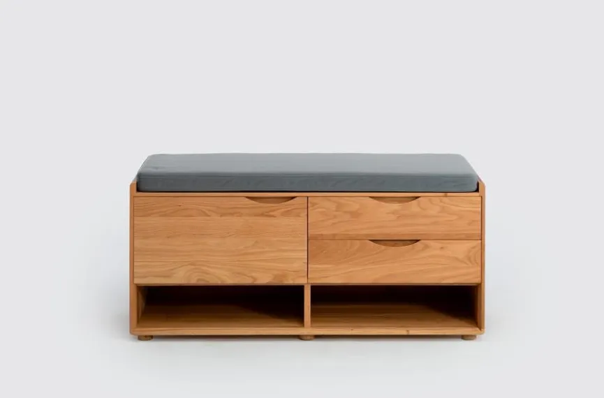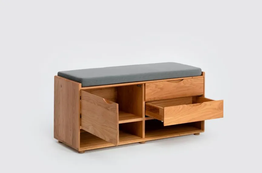 Die Garderobenbank Primera überzeugt von der ersten Sekunde an durch ihre ansprechende Optik, die Ihre Einrichtung bereichert. Sie können auf der Umkleidebank komfortabel Platz nehmen und sich in Ruhe umziehen. Zudem bietet die Garderobenbank Primera viel Stauraum in zwei Schubladen und hinter der Tür.