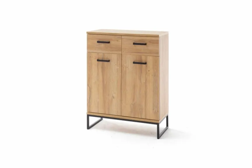 - Korpus und Front aus Spanplatte mit kratzfester Melaminharzfolie in Grandson Oak