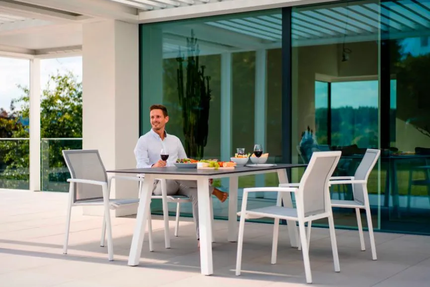 Formschönes Design trifft Stabilität und Langlebigkeit – Gartenmöbel aus Aluminium mit Textilene begleiten Sie ein Leben lang. Das wunderbar leichte, pulverbeschichtete Aluminiumgestell geht eine harmonische Verbindung mit wetterfestem, luftdurchlässigem und besonders hautfreundlichem Kunststoffgeflecht aus hochwertiger Kunststofffaser ein. Dieses formstabile Gewebe ist nicht nur UV- und sonnenölbeständig, sondern auch wunderbar pflegeleicht, wasserabweisend und besonders schnell trocknend. Das Ergebnis ist ein modernes Möbelstück mit hervorragendem Sitzkomfort, das Ihnen lange Freude bereitet.