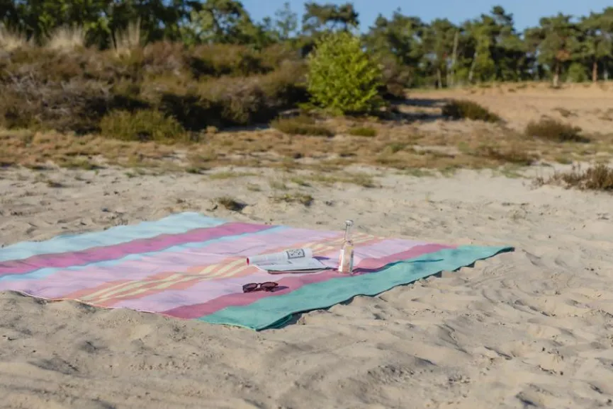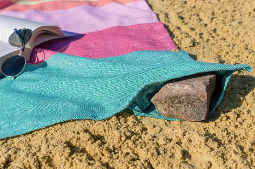 Das Label Remember präsentiert Ihnen mit dem Strandtuch Portofino 200×200 cm einen attraktiven Hingucker. Vor allem das farbenfrohe Streifenmuster prägt den stylischen Look dieses Badetuchs. Natürlich ermöglicht Ihnen das Strandtuch Portofino 200×200 cm dank angenehm weicher Qualität zudem hervorragenden Komfort. Als besonderen Clou bietet es Ihnen vier Ecktaschen, sodass es bei Bedarf beschwert werden kann.