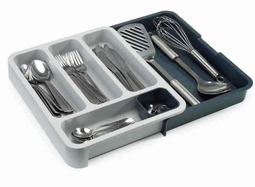 Joseph Joseph präsentiert mit dem Besteckeinsatz Drawer Store 2tlg. ein tolles Accessoire für jeden Haushalt. Der Einsatz lässt sich verstellen und ist damit für kleine und große Schubladen geeignet. Nicht nur Besteck, auch größere Küchenutensilien finden in dem Besteckeinsatz Drawer Store 2tlg. von Joseph Joseph ihren Platz.