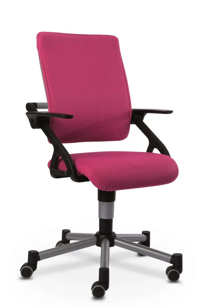 - Bezug aus Stoff in brombeere, Gestell/Fußkreuz aus Kunststoff in silbergrau, Armlehnen aus Kunststoff in schwarz