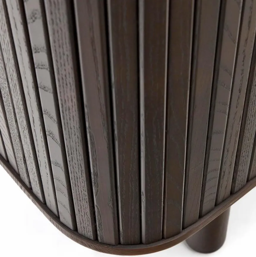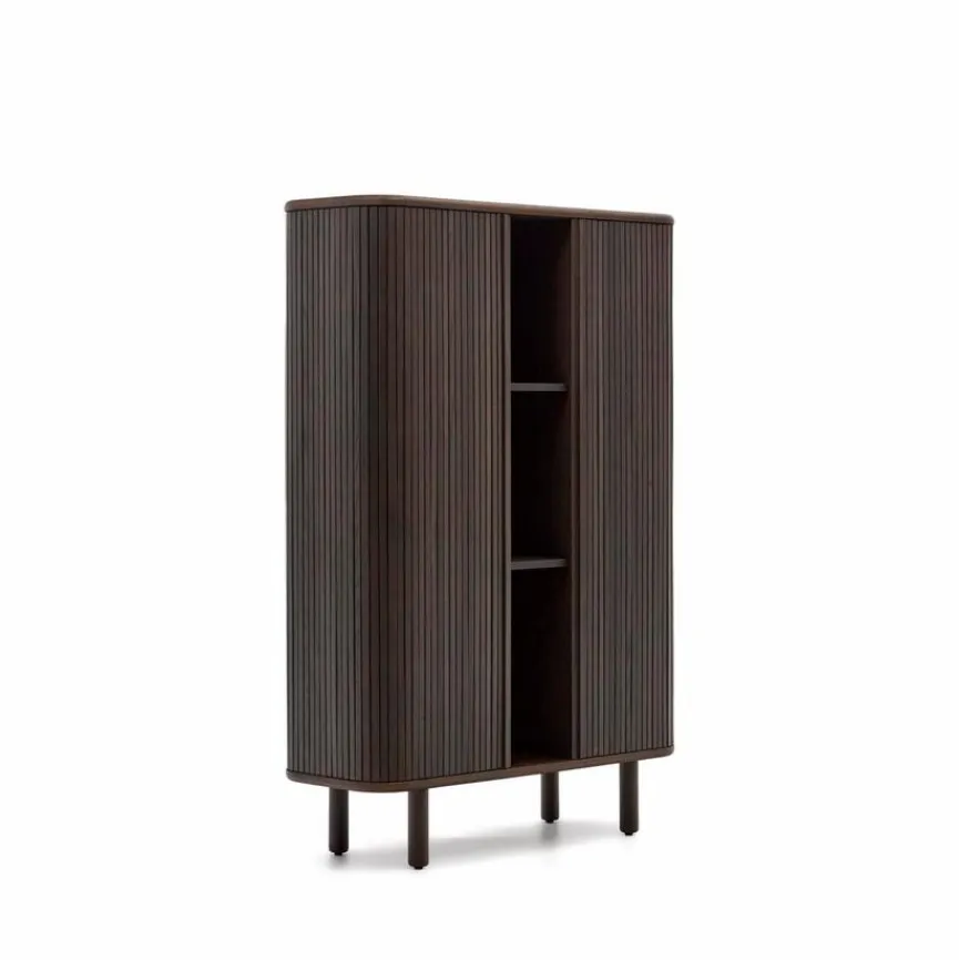 Mit seinem charaktervollen Tambour-Rolladenmöbel-Look ist das Kave Home Highboard Mailen ein fantastischer Eyecatcher. Zwei Schiebetüren im Lamellendesign und abgerundete Korpuskanten geben bei dieser hohen Kommode aus gestalterischer Sicht den Ton an. Ergänzen Sie das Highboard Mailen mit weiteren Elementen aus dieser Kollektion, um für einen einheitlichen Look zu sorgen.