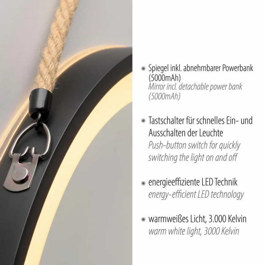 - Abnehmbare Powerbank: Aufladezeit ca. 3 Stunden, Akkulaufzeit ca. 3 Stunden (ohne Ladekabel/Netzteil)