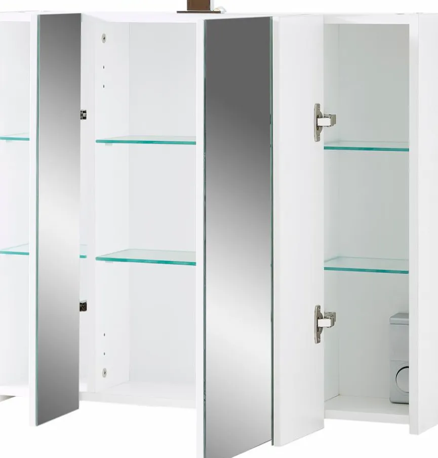 In dem minimalistisch gestalteten Spiegelschrank Pescara von Germania finden viele Utensilien wie beispielsweise Kosmetikartikel oder Zahnputz-Zubehör Platz. Das attraktive Badezimmermöbelstück ist mit drei Türen und sechs Einlegeböden aus Glas ausgestattet, sodass Sie alles übersichtlich unterbringen können und bei Bedarf schnell zur Hand haben. Mit dem praktischen Spiegelschrank Pescara nutzen Sie den zur Verfügung stehenden Raum in Ihrer Wohlfühloase optimal.