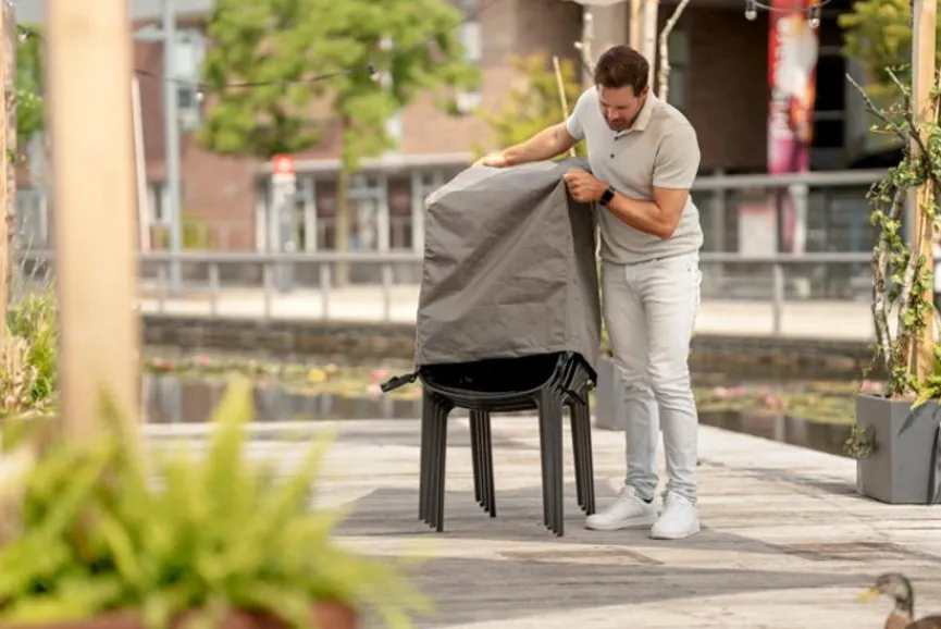 Mit der Stapelsessel-Schutzhülle 66x128x66 cm bewahren Sie Ihre Stühle bei Regen, Schnee und Sonne gut und sicher auf. Diese hochwertige Gartenmöbel-Schutzhülle weist Schmutz und Wasser zuverlässig ab und bietet idealen Schutz vor allen Witterungseinflüssen. So sorgt die Stapelsessel-Schutzhülle 66x128x66 cm dafür, dass Sie noch länger Freude an Ihren Möbeln haben.