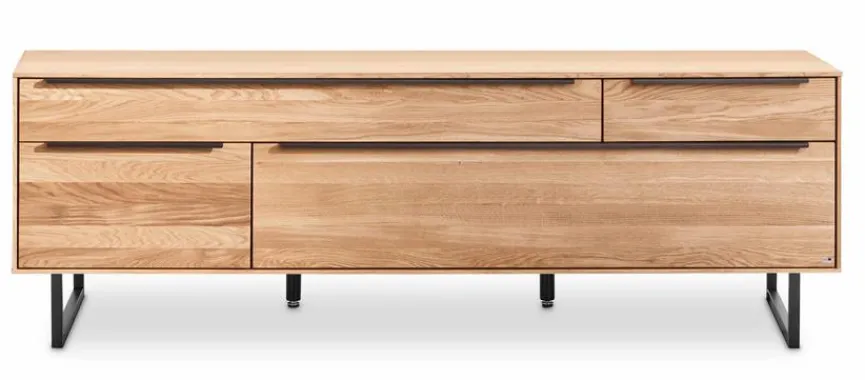 - Korpus aus Holzwerkstoff (Spanplatte) in Echtholz Eiche furniert, Front aus massiver Eiche
