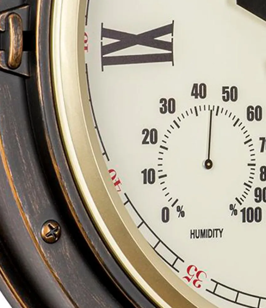 Für die Quarzwanduhr 4546 Ø40cm hat sich Paragon (Atlanta) ein ganz besonderes Design einfallen lassen. Dieser Zeitmesser erinnert in Form und Design an ein Bullauge. Darüber hinaus kommen auch bei den originellen Skalen Assoziationen zu Schiffsinstrumenten auf. Denken Sie bei jedem Blick auf die Quarzwanduhr 4546 Ø40cm an die Weite der Ozeane.