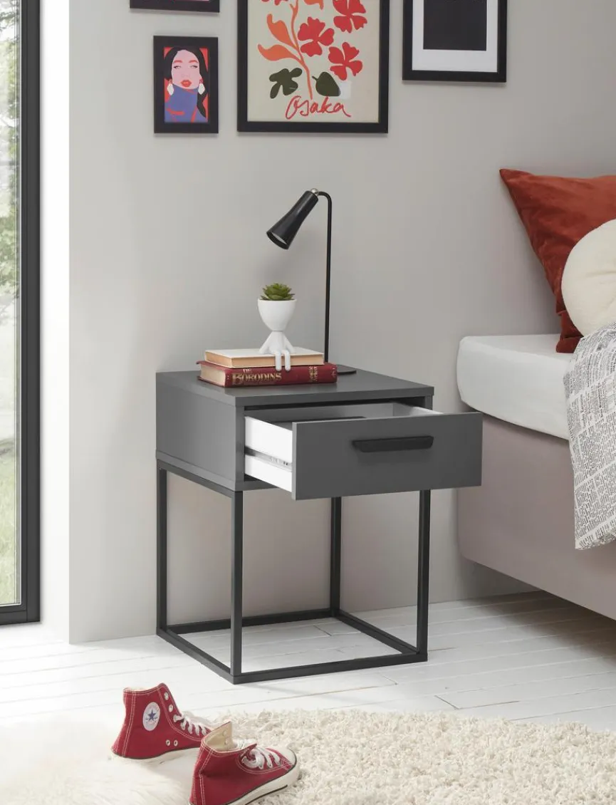 Der Nachttisch Suna aus dem Hause Pol Power verbindet seinen edlen Korpus mit einem modernen, schlanken Gestell. Klare Konturen verleihen der Nachtkonsole zudem ein geradliniges Design. Selbstverständlich bietet der Nachttisch Suna viel Platz für viele wichtige Utensilien, die zur späten Stunde griffbereit sein sollen.