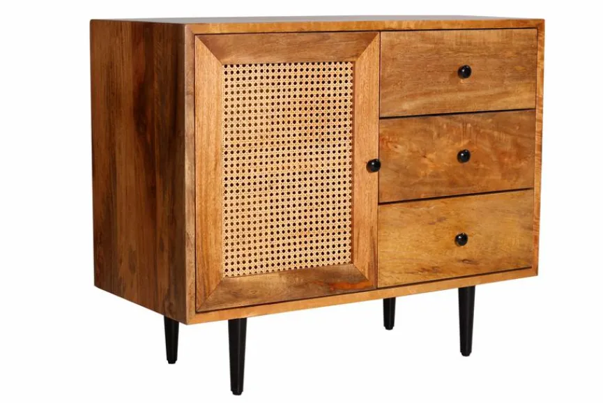 Das ursprünglich aus Indien stammende Mangoholz wurde vor einigen Jahren für die Möbelherstellung entdeckt. Es besticht mit einer hellen, natürlich braunen Farbe. Mit der frischen, klaren Optik passt es perfekt zum angesagten Massivholztrend.