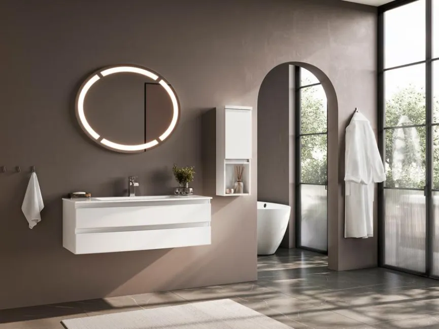 Der Spiegel Vora von Puris beeindruckt mit seinem schnörkellosen, puristischen Design, wodurch er sich mühelos zu vielen verschiedenen Einrichtungsstilen kombinieren lässt. Dank der integrierten Leuchtleiste avanciert er im Nu zum Herzstück jedes Raums und wertet ihn ganz nebenbei auch noch optisch auf. Für optimale Funktionalität ist der Spiegel Vora außerdem mit einer Spiegelheizung ausgestattet.