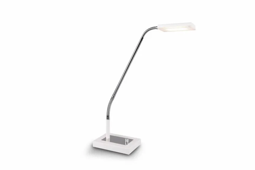Die LED-Tischleuchte Sandor von Reality Leuchten ist durch die beiden integrierten Schwanenhalsbereiche problemlos so zu positionieren, dass ihr Lichtstrahl auf den richtigen Fleck gerichtet wird. Dadurch erleichtert die LED-Tischlampe das Schreiben oder Lesen am Schreibtisch auf optimale Weise. Mit dem klaren Design fügt sich die LED-Tischleuchte Sandor aus dem Hause Reality Leuchten zudem gut in viele Einrichtungsstile ein.