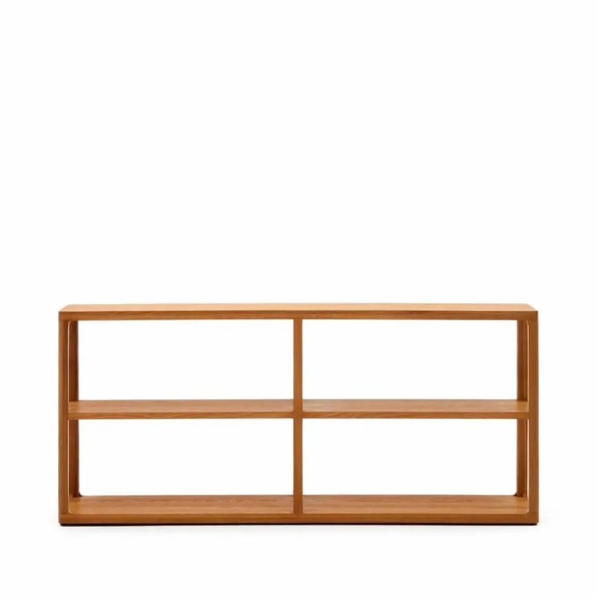 Das Regal Maymai von Kave Home verkörpert die natürliche Schönheit des Eichenholzes in einem puristischen und robusten Design. Genießen Sie die zeitlose Eleganz dieses Wandregals, das jeden Raum mit edlen Materialien und minimalistischem Flair bereichert. Das Regal Maymai mit seinen verstellbaren Beinen bietet Flexibilität und die natürliche Eichenstruktur mit Bürsteneffekt verbreitet einen eleganten Touch.
