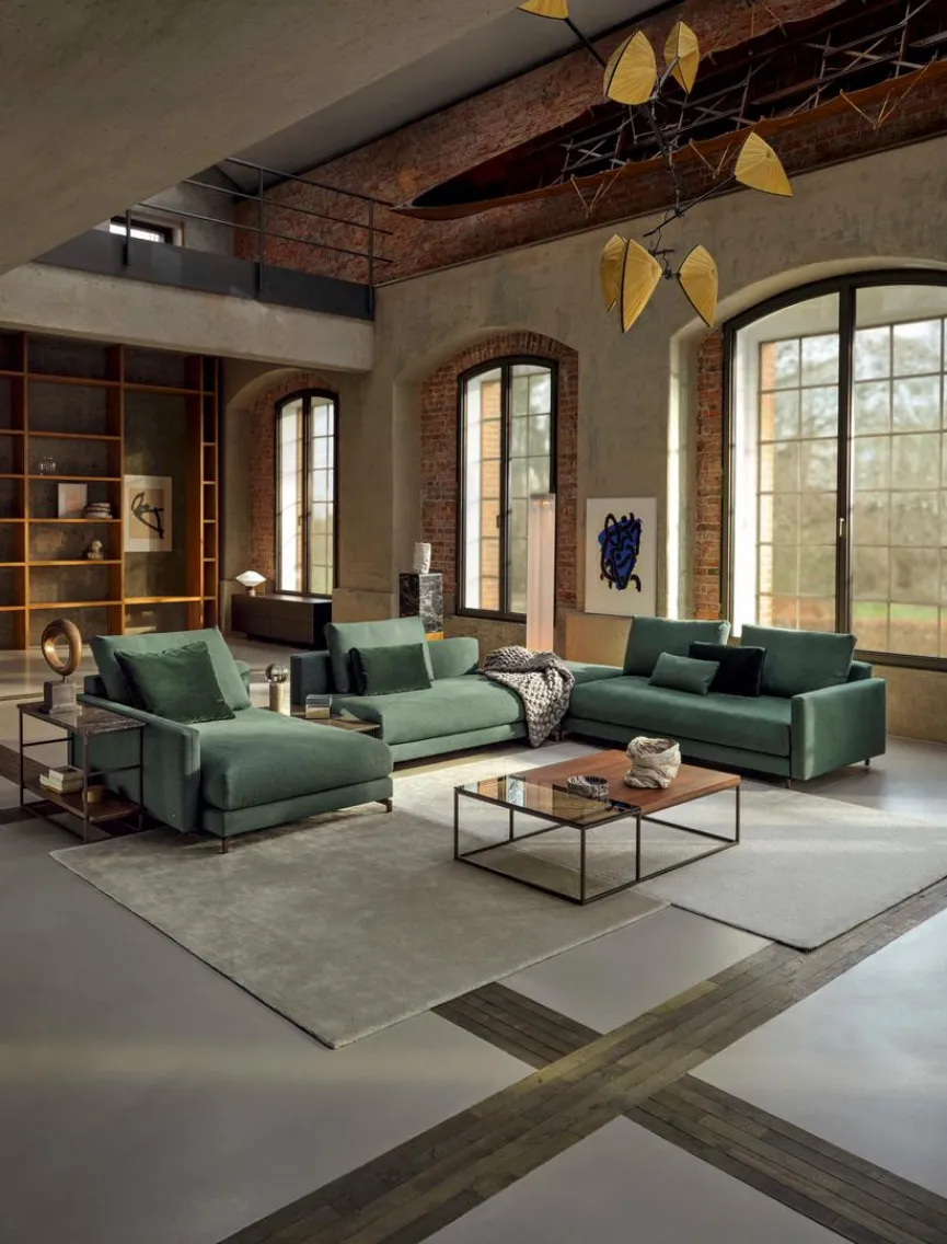 - Wohnlandschaft besteht aus Anreihsofa XL mit Armlehne links (K-XL-ASO Nuvola / SB105)li, Ablagetisch (987), Anreihsofa ohne Armlehnen (K-ARB Nuvola / SB168), Polsterbank ohne Rücken (PB Nuvola 105), Anreihsofa mit Armlehne rechts (K-ASO Nuvola / SB189re)