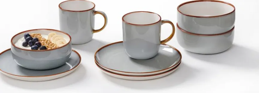 - Je 4 Frühstücksteller Ø 20,5 cm, Müslischalen Ø 14,5 cm, Kaffeebecher 400 ml