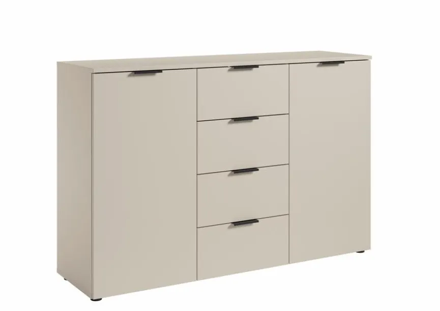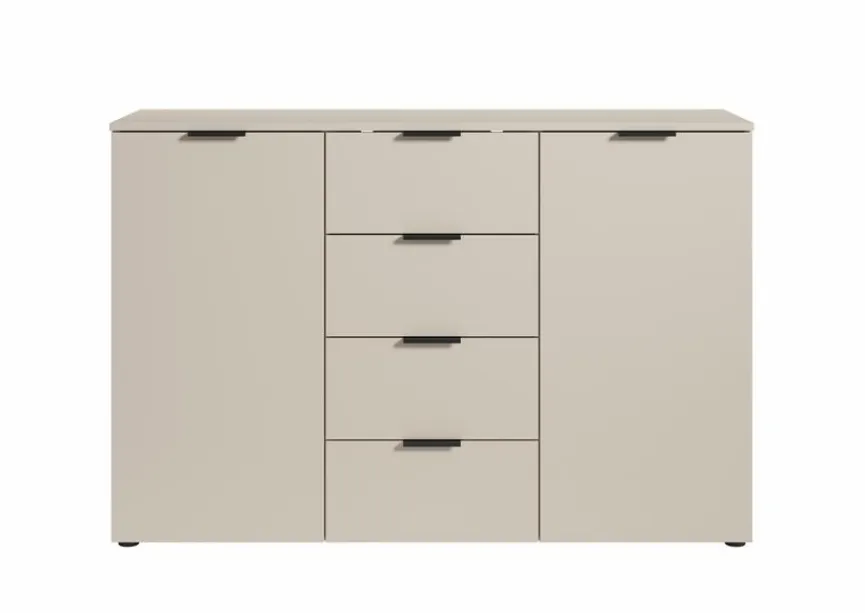 Die Kommode Linz vereint ein geschmackvolles Erscheinungsbild mit einem hohen Maß an Funktionalität. Vor allem das klar strukturierte Design macht dieses Möbelstück vielseitig kombinierbar und unterstreicht zugleich den stilvollen Charakter. Hinter zwei Türen und in vier Schubladen hält die Kommode Linz für Sie zudem jede Menge nützlichen Stauraum bereit.