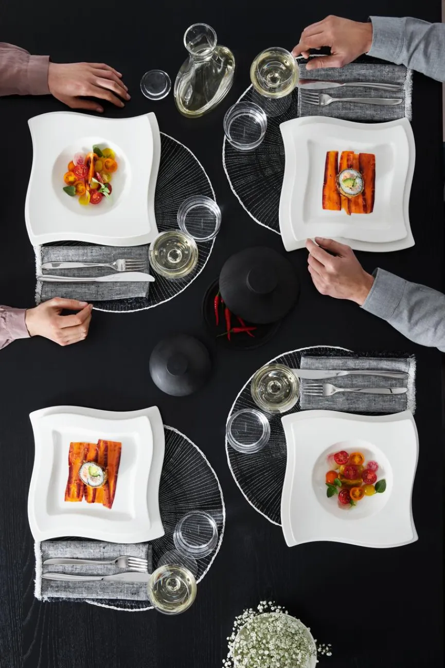 Die Marke Villeroy & Boch präsentiert mit dem Speiseteller New Wave einen echten Hingucker. Der Essteller fällt bedingt durch seine geschwungenen Formen sofort ins Auge und ist eine gelungene Mischung aus Funktionalität und ansprechendem Design. Mit dem Speiseteller New Wave von Villeroy & Boch sorgen Sie für mehr Kreativität an Ihrem Esstisch.