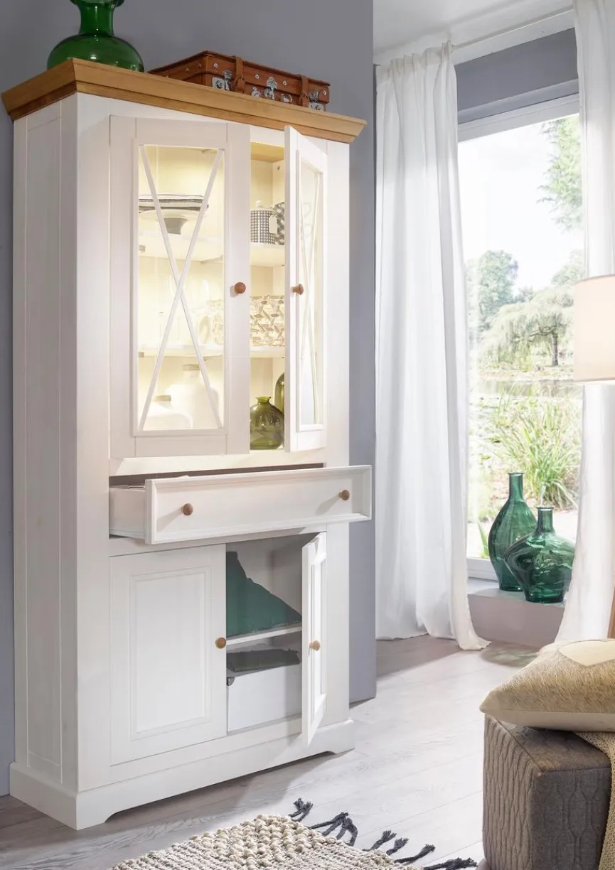 Die attraktive Vitrine Minnesota besitzt durch Ihre Kombination aus Echtholz und Glas einen ganz eigenen Charme. Außerdem bietet die Glasvitrine reichlich Platz und lässt sich vielseitig benutzen, zum Beispiel für Bücher, Dekoration und mehr. Auch hinsichtlich ihrer Verarbeitung lässt die Vitrine Minnesota keine Wünsche offen.