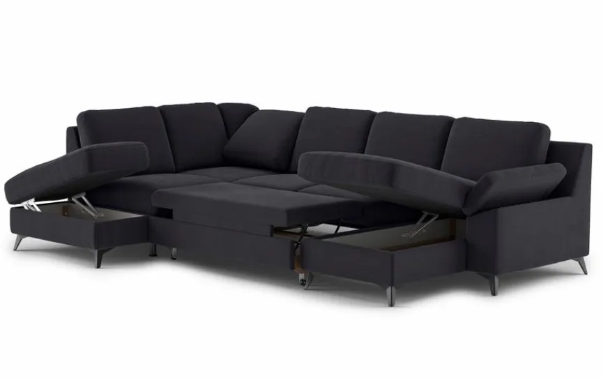 Farbe: CharcoalMaterial: StoffGröße: Breite: 309,00 cm, Höhe: 90,00 cm, Tiefe: 204,00 cm