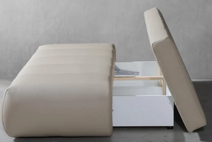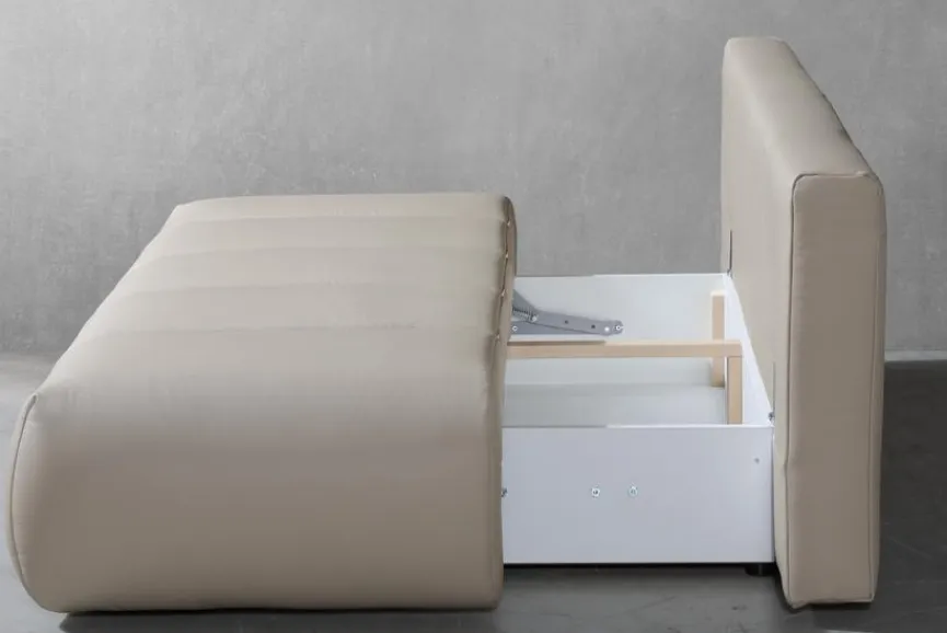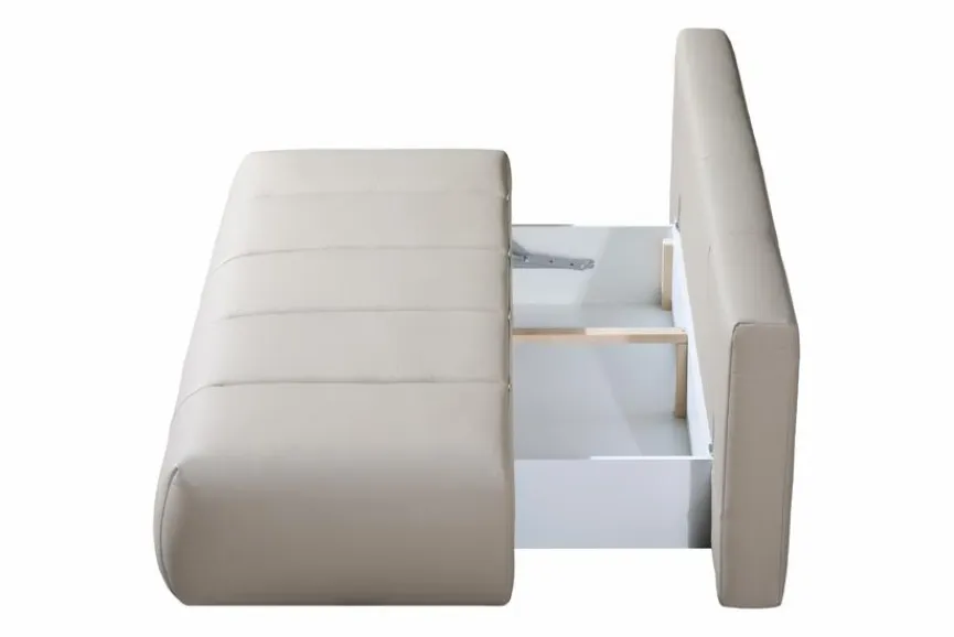 - Inkl. Schlaffunktion durch umklappbare Rückenlehne und Bettkasten