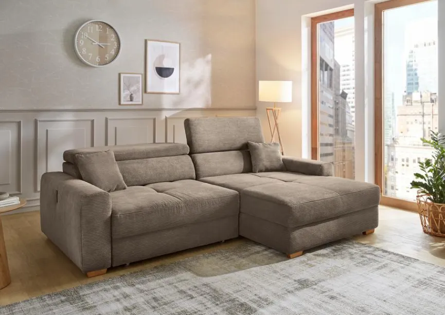 Farbe: TaupeMaterial: CordGröße: Breite: 277,00 cm, Höhe: 109,00 cm, Tiefe: 187,00 cm