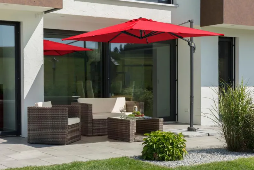 - Inkl. Plattenständer für Wegeplatten 50 x 50 x 5 cm (Lieferung ohne Platten). Einteiliger Schirmstock 40 x 55 cm