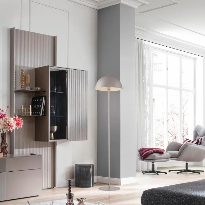 Die Stehlampe Ali aus der SCHÖNER WOHNEN-Kollektion bezaubert mit ihrem puristischen Design, dem ein kuppelartiger Metallschirm eine anheimelnde Wirkung verleiht. Ein Tellerfuß verleiht der schlanken Stehleuchte einen sicheren Stand. In einer Zimmerecke oder neben dem Fernsehsessel platziert, beleuchtet die Stehlampe Ali gern genutzte Bereiche des Raumes.