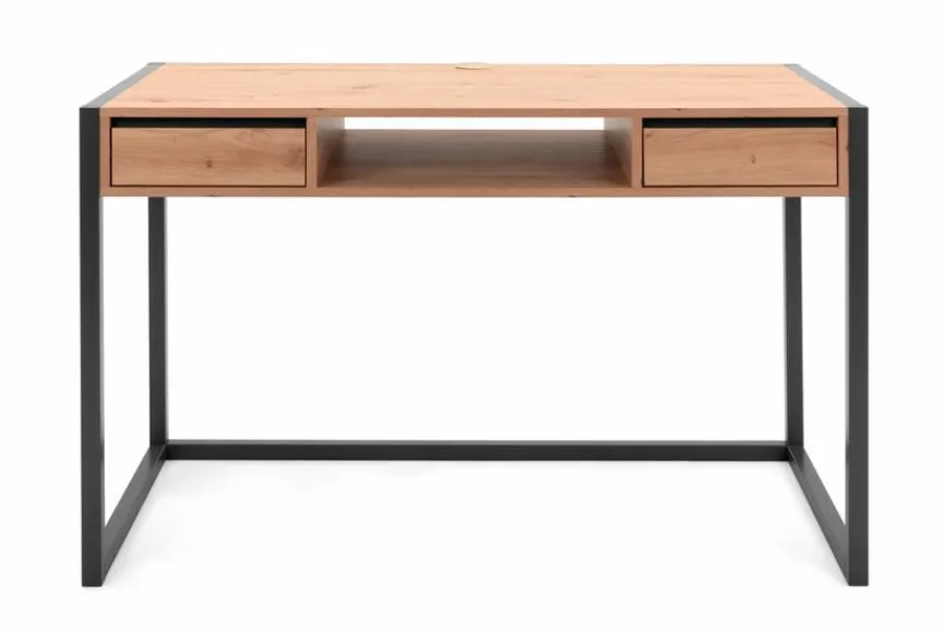 Der Schreibtisch Denver gefällt mit seinem aus dem Holzwerkstoff MDF gefertigten Rahmen und einer praktischen Fachunterteilung. In den beiden Schubfächern lassen sich alle wichtigen Utensilien unterbringen, während das Notebook seinen Platz im Mitteleinschub finden kann. Auch durch seine attraktive Holzoptik kann der Schreibtisch Denver punkten.