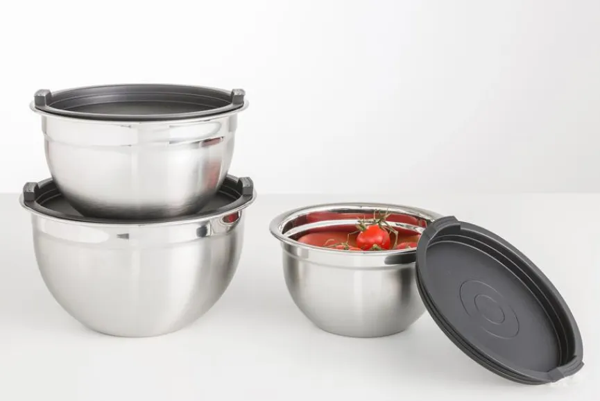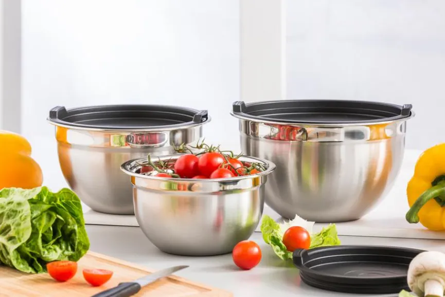 Das praktische Schüsselset 3tlg. ist eine nützliche Ergänzung für Ihre Küche, die sich flexibel nutzen lässt. Ob zum Marinieren von Köstlichkeiten, dem Zubereiten von Pfannkuchenteig oder dem Aufbewahren von Lebensmitteln – das multifunktionale Schüsselset 3tlg. lässt sich vielseitig anwenden und besticht dabei mit seinem modernen Design.