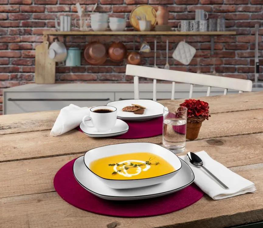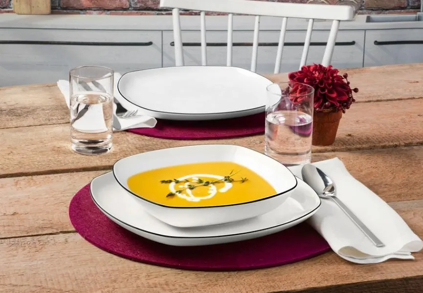 Der Suppenteller Lido 21×21 cm überzeugt mit seinem bewusst zurückhaltenden Aussehen und kann dadurch kinderleicht mit vielen unterschiedlichen Tischkonzepten kombiniert werden. Auch farblich lässt die Suppenschüssel kreative Arrangements problemlos zu und weiß sowohl im Alltag als auch zum edlen Dinner stets zu glänzen. Besonders gut passt der Suppenteller Lido 21×21 cm zu schnörkellosem Besteck und schlichten Glasvasen.