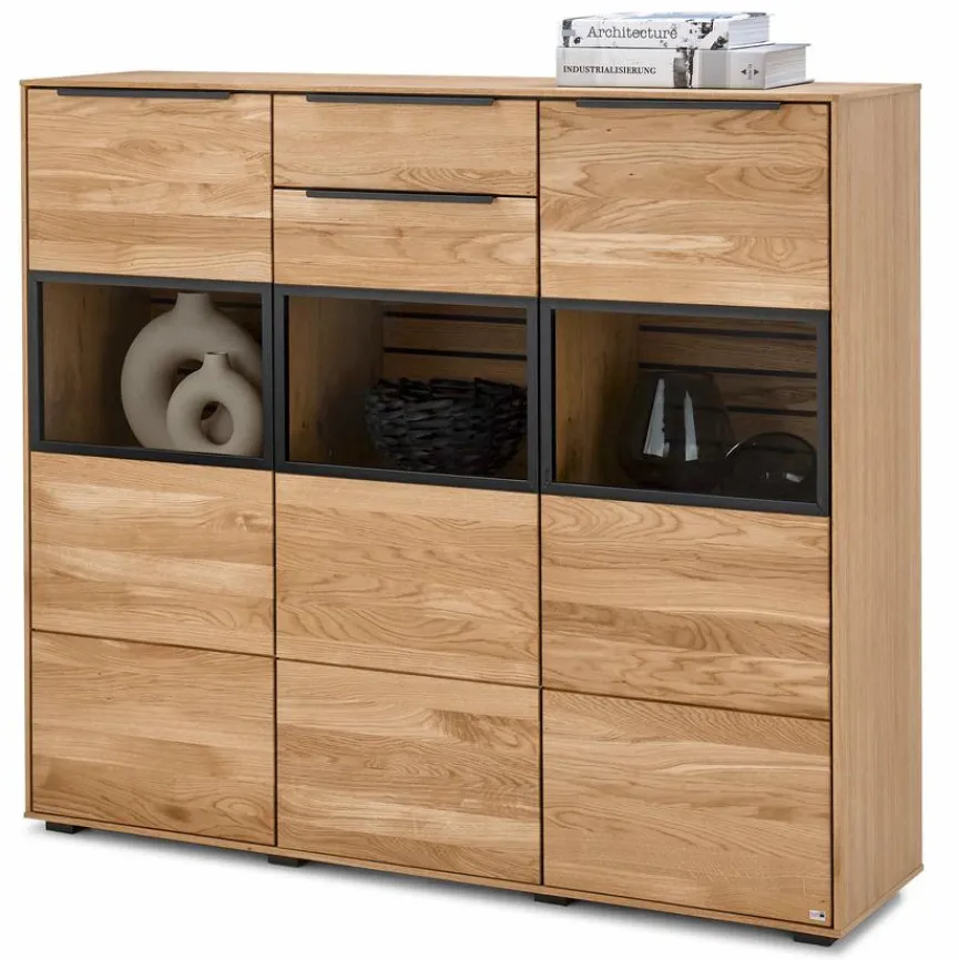 - Mit 3 Türen mit Glasausschnitt, 1 Schubkasten, 3 Einlegeböden