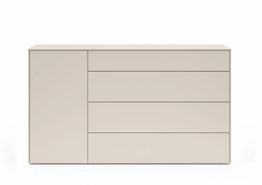 Dezente Eleganz und zeitlose Optik zeichnen die Kommode Riverside von set one by Musterring aus. Hinter einer Tür und in vier Schubladen findet sich reichlich Platz, um Geschirr, Tischwäsche, Accessoires oder andere liebgewonnene Dinge aufzubewahren. Dank der schlichten Farbgebung und der klaren Form passt die Kommode Riverside zu jedem modernen Einrichtungsstil.