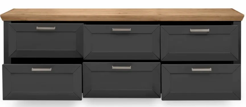 - Korpus aus Holzwerkstoff (Spanplatte) mit kratzfester Melaminharzfolie in Graphite, Front aus Holzwerkstoff (MDF) in Graphite, Absetzung in Eiche Artisan