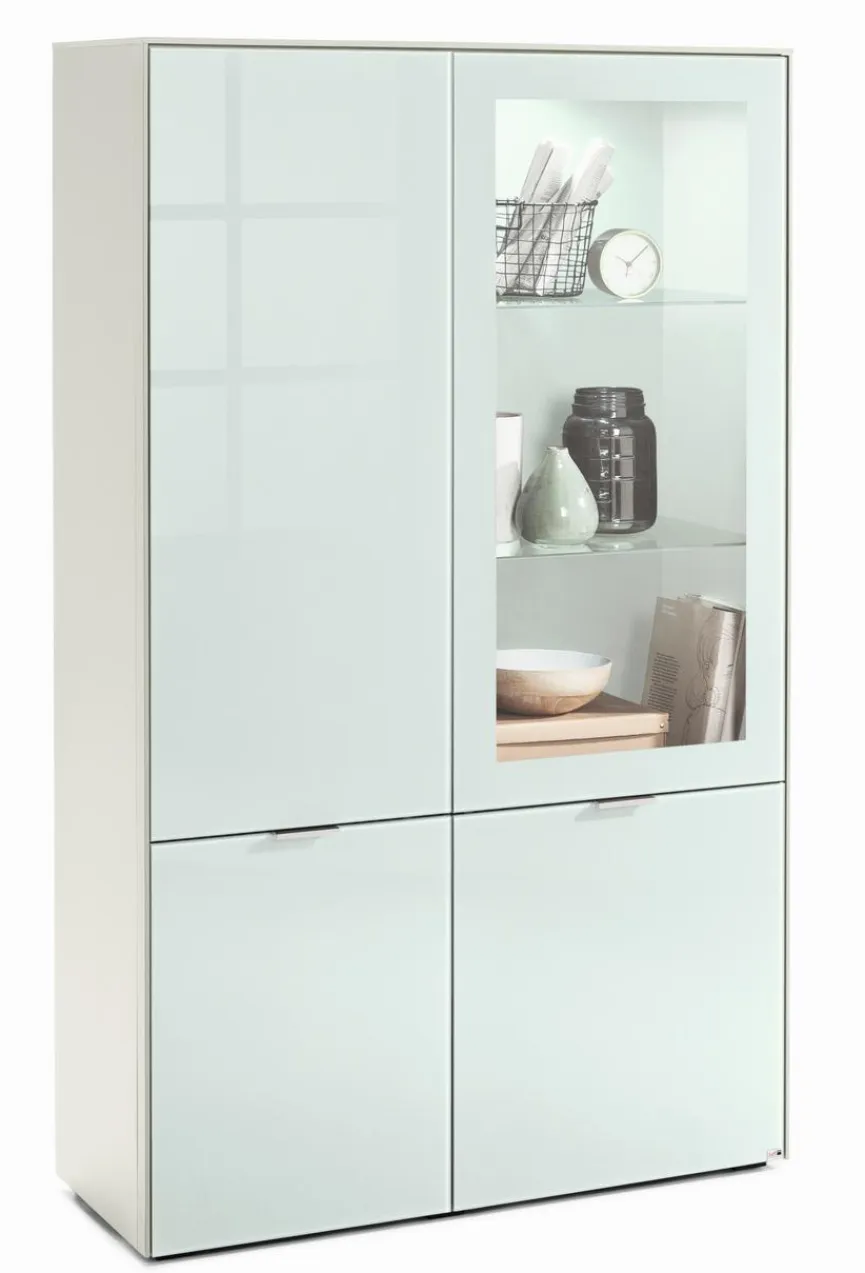 - Links mit 1 Tür und 4 Einlegeböden, Rechts mit 1 Tür mit Glasausschnitt, 2 Glaseinlegeböden und 2 festen Böden