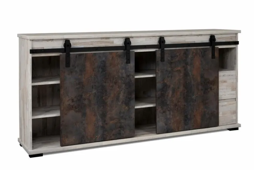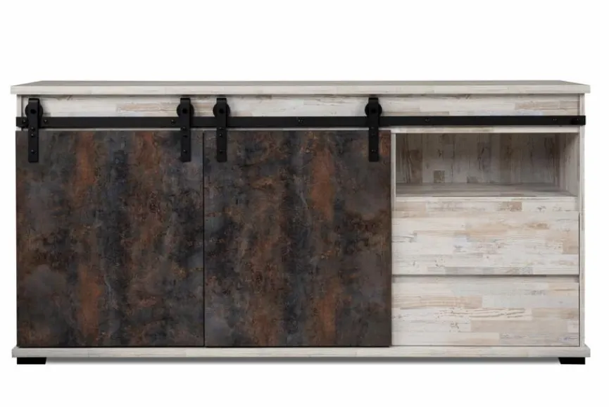 Mit dem Sideboard Sevilla erhalten Sie ein hochwertiges Möbel, das aufgrund seines rustikalen Designs alle Blicke auf sich zieht. Die Kommode bietet ausreichend Platz für diverse Utensilien und lässt sich dank ihrer großzügigen Ablagefläche hervorragend mit hübschen Dingen dekorieren. Zeigen Sie Ihr Gespür für moderne Wohntrends und setzen Sie einen attraktiven Akzent in Ihrem Zuhause mit dem Sideboard Sevilla.