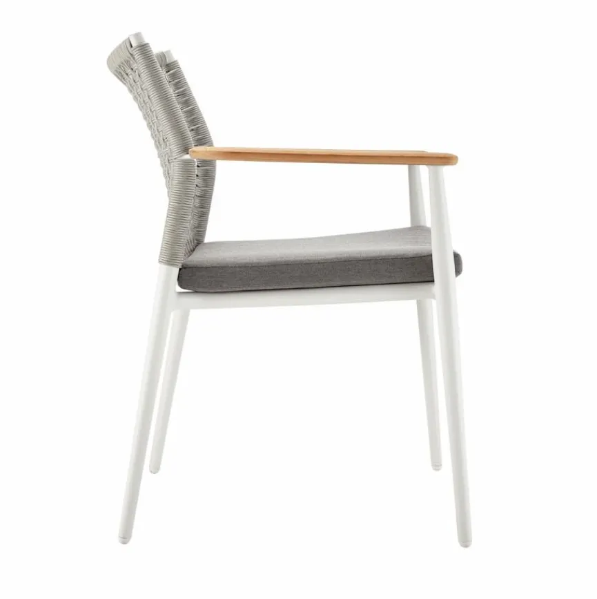 Leicht, strapazierfähig und langlebig – diese Eigenschaften machen die neue Generation von Gartenmöbeln aus Polyester Rope und Aluminium aus. Das Seilgeflecht sieht nicht nur trendig aus, sondern sorgt für eine gleichmäßige Verteilung des Gewichts des Sitzenden und schließt somit ein Verformen aus. Aufgrund der porenfreien, glatten Oberfläche der beiden Materialien ist das Gartenmöbel leicht durch Abwischen mit klarem Wasser zu reinigen. Sowohl Aluminium als auch Polyester Rope sind besonders robust und bereiten Ihnen viele Sommer lang große Freude.